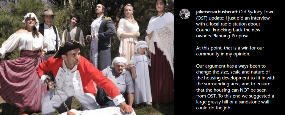 Since 2017, bushcraft teacher and conspiracist activist Jake Cassar has led the campaign to revive Old Sydney Town. His involvement must be understood in the context of his affiliations with settler-conspiritual groups such as Coast Environmental Alliance (CEA) and Save Kariong Sacred Lands, both of which oppose Aboriginal-led land developments and promote unverified spiritual claims about Country.