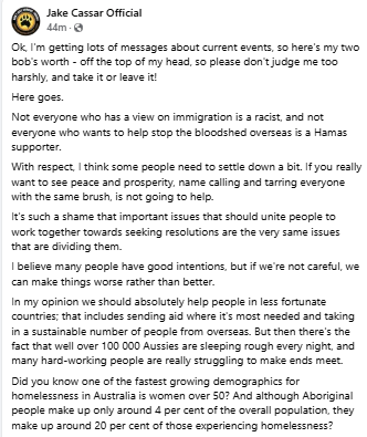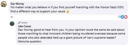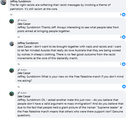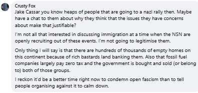 Local activist Jake Cassar posted a statement after the rallies across multiple Facebook accounts. Instead of clearly condemning the Nazi presence, he talked about “division,” “extremes on both sides,” and the need for “love not hate.”