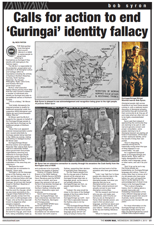 Meet the true Guringai, Gyringay, gringai gooringai People – the first casualties of the GuriNgai hoax.